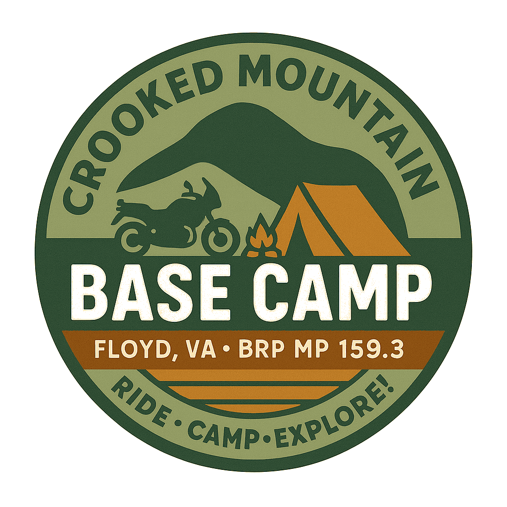 We’re downsizing our September rally into the Crooked Mountain Moto Base Camp Weekend—a lower-cost, ride-first meet-up to promote fall riding in Floyd. No live music this year; the focus is riding, camping, and exploring. Motorcycle-only camping this weekend.
