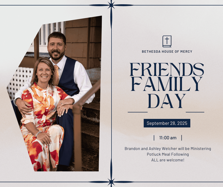 Bethesda House of Mercy is hosting Friends and Family day. Ashley and Brandon Welcher will be ministering.... More