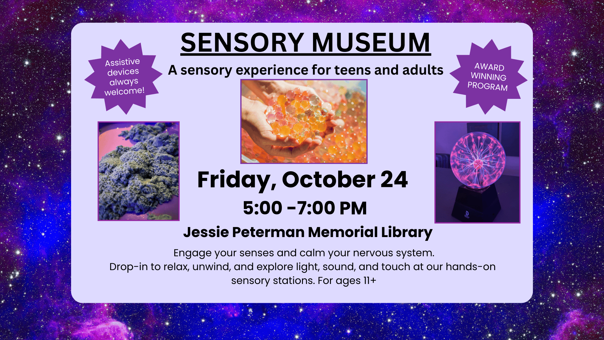 Sensory experiences can be helpful to regulate your system no matter your age! Drop in for a... More